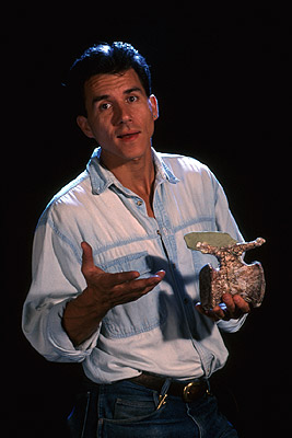 VERTEBRA University of Chicago paleontologist Paul Sereno explains reconstruction techniques for ancient bones. The green part of this Jobaria tail vertebra has been completed with modelling clay. |